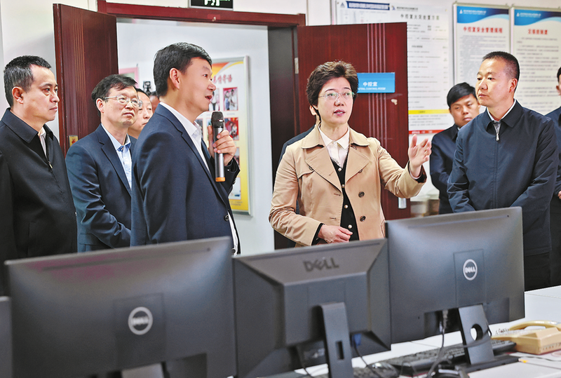 5月11日,市委書記趙璟深入丹鳳縣調研檢查維穩安保工作。圖為她在商洛堯柏水泥公司中央控制室,通過視頻監控系統察看企業安全運行情況。 (本報記者 李 敏 攝)
