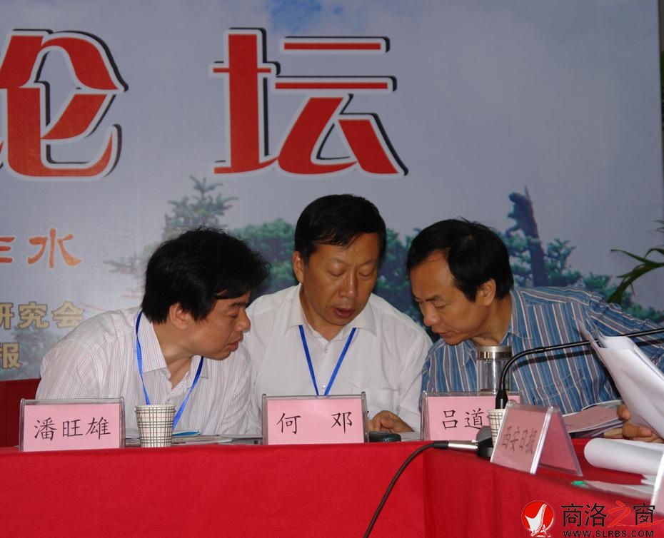 三峽日報傳媒集團總經理潘旺雄、商洛日報社社長何鄧、中國地市報廣告委員會秘書長呂道寧相互交流