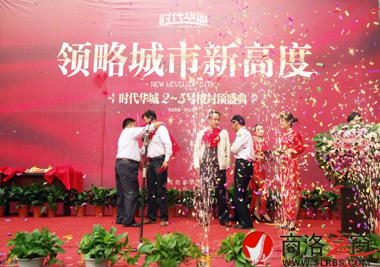封頂儀式上錦業地產劉昌年總經理詳細解說了時代華城專注高尚人居領域的開發理念,以及項目超越傳統居住的細節落實;承建商浙江小九天及陜西大成監理公司領導也上臺發言,表示會繼續嚴把質量關,力求把時代華城打造成商洛的精彩工程、形象工程。最后,在鞭炮聲和禮花炮聲中,綠迪集團劉總、劉部長與建筑、監理公司領導共同啟動了時代華城的封頂儀式。