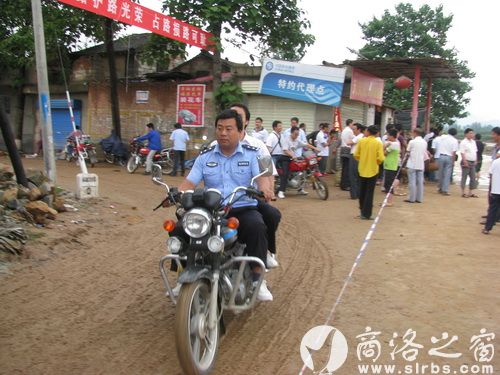 7月23日晚8時至24日早9時許,一場少遇的特大暴雨襲擊了秦嶺山中的山陽縣,最高降水量達150毫米以上。洪水災害造成全縣30個鄉鎮258個行政村1966個組8.16萬戶34.17萬人不同程度受災,通往各鄉鎮的公路交通、電力線路、通訊聯絡中斷。面對突如其來的洪水災害,要盡早深入災區救災,摩托車成了主要的抗洪災救交通工具,山陽縣民人法院院長殷本明立即帶領6名法官騎著3輛摩托車,向縣城東邊前行,當走到甘溝口村時,道路被嚴重被毀,連步行都無法經過,他們立即幫助受災戶李振柱轉移超市里物品、清理家里淤泥,隨后又投入到隔壁收購藥材、化肥門市進行救災,經過3個多小時的奮戰,受災戶主要物品及時轉移。然后他們又騎著摩托車,沿著203省道邊走邊搶險救災,當走到板巖鎮馬灘這個地方時,遇到前面山體滑坡,泥石流淹沒道路80多米,工程機械正在搶修道路,擋住了去路,他們立即投入搶險隊伍,清理道路落石、河道堆積物。下午,他們沿著商(州)山(陽)路幫助沿線群眾扶苗、挖渠入水,開展生產自救。