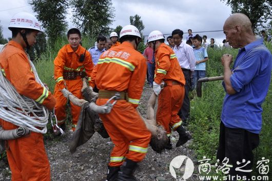 圖為7月24日15時許,洛南縣消防官兵在洛河(尖角段)成功救出一被卷入洪流的男子