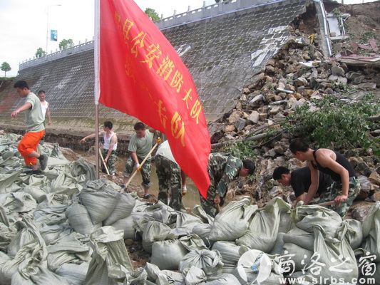 7月24日,山陽暴發百年一遇的大洪災,官兵們在撲滅了匯豐加油站的火災后,顧不上休息,又投入到保護縣河河堤的戰斗中;中午時分,城關鎮甘溝口村一名小女孩被困洪水中已兩個多小時,請求消防官兵前去救援。他們火速抽調精兵強將去救人。經過艱苦努力,終于將小女孩成功救下;薛家溝群眾大橋告急,消防官兵冒雨徒步前行,幫助抗洪搶險,經過努力保住了河堤,確保了附近幾十戶居民的安全。