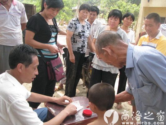 商南縣湘河鎮紅魚村干部給災民逐戶發放救濟款。(孫傳卿 攝)