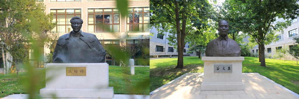 △左圖為中央黨校(國家行政學院)校園內的焦裕祿雕塑,右圖為校園內的谷文昌雕塑。