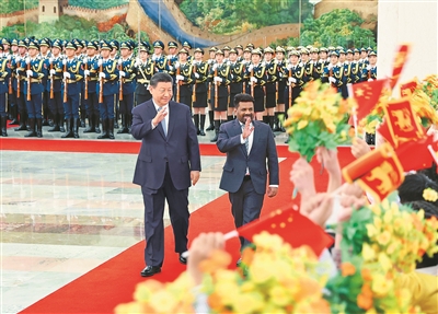 會談前,習近平在人民大會堂北大廳為迪薩納亞克舉行歡迎儀式。