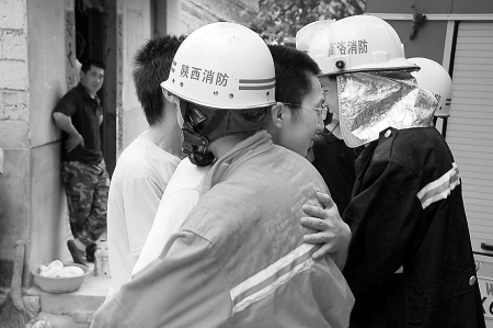 不僅是周華,很多學生都抱住消防戰(zhàn)士久久不愿松開并連聲道謝。