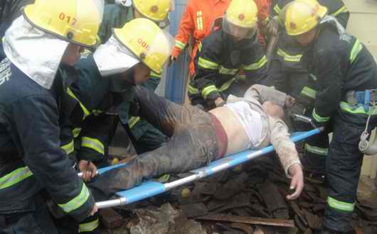 本網(wǎng)訊 (劉欣 方立)8月23日,商鞅廣場(chǎng)東一飯館房屋因雨倒塌,一人被掩埋。商州消防中隊(duì)接到報(bào)警后,15名消防戰(zhàn)士經(jīng)過近20分鐘的緊急救援,成功將一名中年婦女救出。