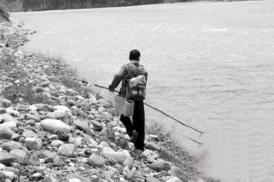“你是電魚的,還是炸魚?”昨日上午,在洛南縣廟坪鄉(xiāng)桃?guī)X村洛河一岔口,正在洗衣服的婦女問。因為她發(fā)現這兩天河水減退后,接連來了一些電魚的人。說完她指了指前方河道,果然有一個男人背著電瓶,手持一根長桿在電魚。