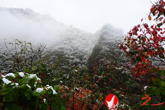 10月27日晚,由于氣溫驟降,商南縣金絲峽落下了今年的第一場雪。28日,漫游景區,晶瑩的白雪與滿山紅葉交相輝映,讓秋冬之交的金絲峽更顯嫵媚、迷人,也為景區平添了幾分神秘色彩。(胡金鑫 李治軍  周程 攝)