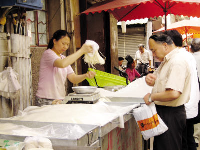 本網訊(蔡少娥)近日,記者在商州區北新街客都超市看到顧客在買新鮮面條時居然用手隨便抓。