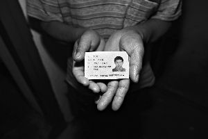 8月4日,郝虎生出示兒子身份證。他說兒子隨身攜帶了身份證,但被送入精神病院前后,無人通知家屬。韓萌攝
