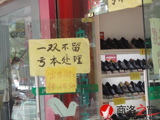 許多經營困難的商家無奈打出這樣的招牌虧本處理商品。劉占良 攝