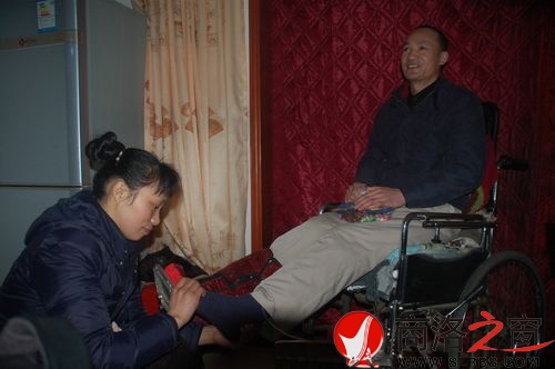 妻子楊芹美雖然很忙碌,但是依然堅持每天為丈夫下肢按摩,促進血液循環