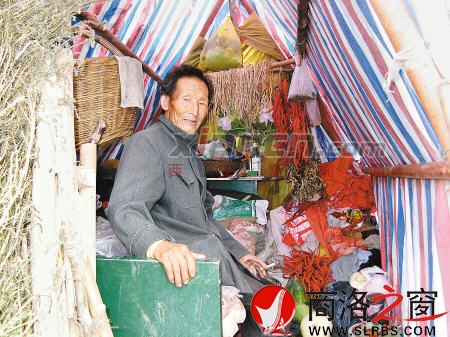 從劉灣街道辦附近的劉灣二號配電室往北走,是一條兩米多寬、直通南秦河的下河便道。11日下午,筆者沿著這條路一直往里走,路兩邊蒿草叢生,走了一段后,一個窩棚擋住了去路。一位路過的村民告訴筆者,這就是牛進才守護河道的住處。窩棚支在路上,鋼管扎成的支架,上面有一塊彩條布,外圍靠著幾捆柴草擋風,邊上的路僅容一輛架子車通過。“廚房”露天,路邊有一個鐵皮桶糊泥巴做成的簡易爐子。等了沒多久,牛進才推著車子回來。今年72歲的他頭發(fā)花白,身材顯得很單薄。在他的帶領下,筆者來到南秦河河邊,發(fā)現(xiàn)河堤上有一塊一畝大小的月牙形缺口,顯得頗為“礙眼”。“這都是以前采砂搞出來的。”牛進才說,“在我來這守河之前,劉灣一帶的村民經(jīng)常騎著三輪車到這里偷著采砂,除了自己用還往出賣,沒幾年就把河堤‘啃’成這樣,還逐漸往附近的莊稼地延伸。今年年初,為了保護河道和耕地,村上決定派專人到河邊值守,考慮到我家里比較困難,人也還算實誠,就把這個活派給了我,每月發(fā)數(shù)百元錢。”接到這個任務后,閑不住的牛進才每天都往河邊跑。“剛開始你攔那些采砂的,人家根本不聽,挖斷路也會被重新填好,實在沒辦法,我就讓村里人給支了個窩棚,從家里拿了被褥和炊具,守在路上把關。”從此以后,牛進才天天吃住都在窩棚里,采砂的一看便無可奈何。