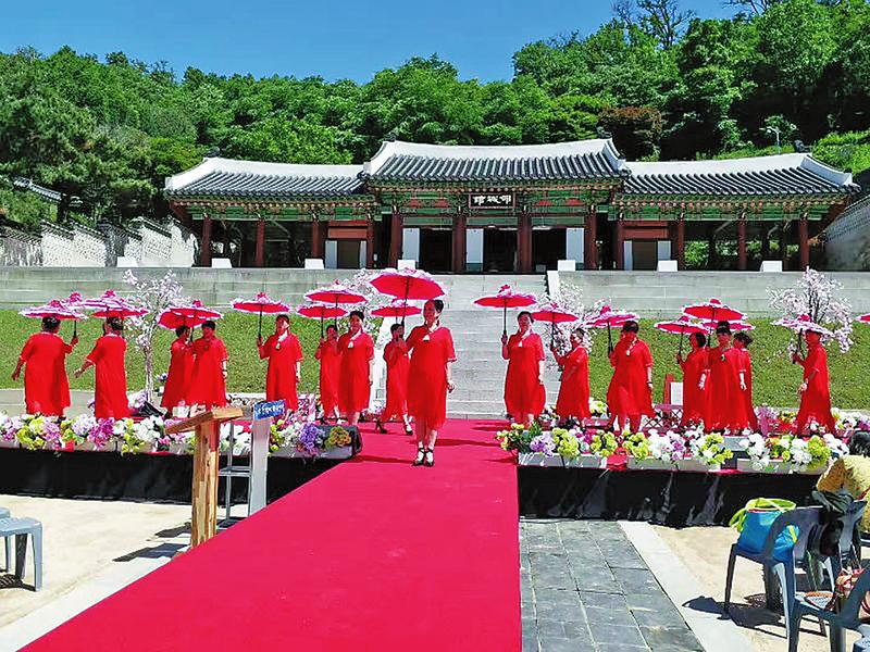 五月十九日,中國旗袍協會在韓國仁川廣域市舉辦了以拍攝中國電影《紅顏雅韻》為載體的中韓文化服飾交流系列活動,商南旗袍協會一行二十多人應邀參加活動,他們精心創作編排的《蘭花花》獲得創作金獎。(通訊員 殷玲 特約記者 孫傳卿 攝)