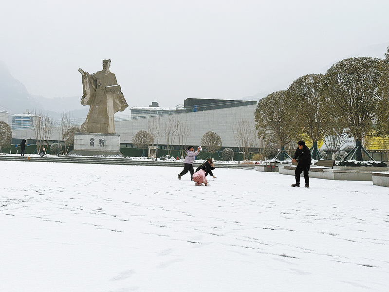 至1月16日,商州區(qū)已經(jīng)下了兩天大雪,放眼望去,到處白茫茫一片。在商洛市新地標(biāo)——秦嶺博物館的廣場(chǎng)上,人們跑著、跳著,恣意地玩雪。家長(zhǎng)領(lǐng)著孩子,滾雪球、打雪仗,他們互相追逐、嬉戲,不時(shí)傳來(lái)一陣陣歡聲笑語(yǔ)。盡管寒風(fēng)凜冽,但嬉鬧的人們身上散發(fā)出的熱情和活力,仿佛能驅(qū)除所有的寒冷。