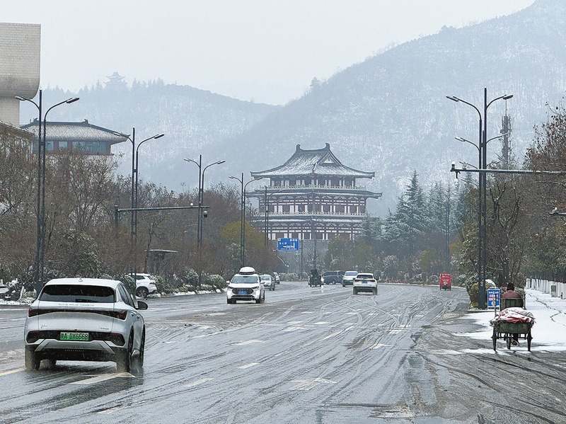 在商洛文化藝術(shù)中心、丹鶴樓附近,車流明顯減慢了速度。偶爾在等紅綠燈的間隙,有乘客搖下車窗,抬頭望向空中飄舞的雪花,這一刻天地都浪漫起來(lái)。