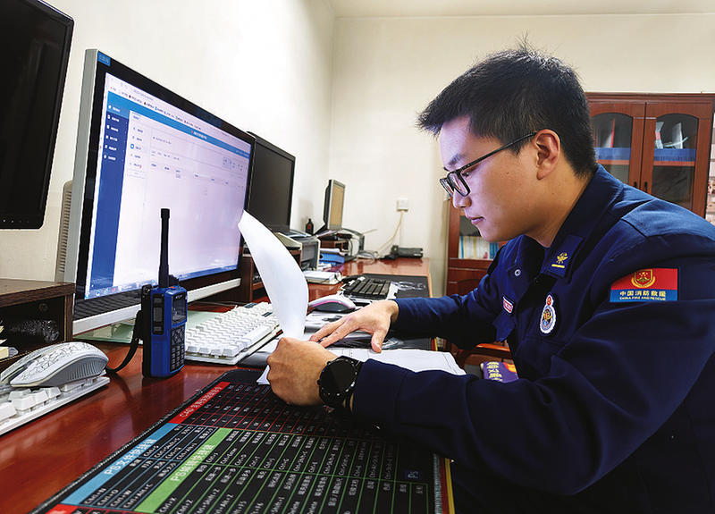 今年26歲的楊龍是商洛市消防救援支隊丹南路特勤站的一名通信員,主要負責接處警整個流程,包括接警、記錄報警內容、調派出動車輛以及上報出警情況等。2024年春節,是楊龍在這里度過的第5個春節。與站上所有的消防員一樣,楊龍也沒有假期。臨近春節,突發事件也層出不窮,除了火災現場,市民門鎖損壞被困、意外落水、交通事故等需要救援的事件,消防特勤站接到報警都要及時處警。