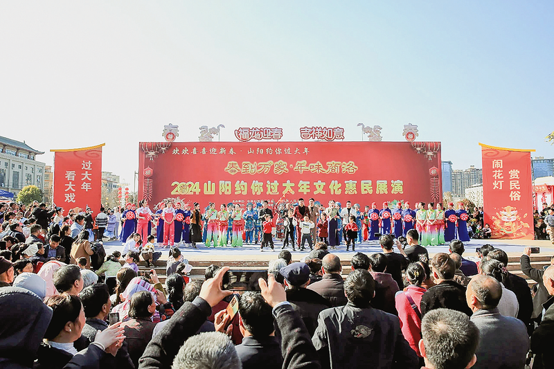 ②2月17日,山陽縣新春廣場文藝展演活動吸引了眾多群眾前來觀看。 (本報記者 鞏琳璐 攝)
