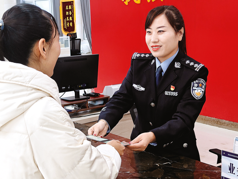 ?3月4日,民警王婷正在為前來(lái)?yè)Q證的駕駛員辦理更換機(jī)動(dòng)車(chē)駕駛證業(yè)務(wù)。從警22年的王婷,現(xiàn)任市公安局交通警察支隊(duì)車(chē)輛管理所駕管科科長(zhǎng),她用熱情的笑容和嚴(yán)謹(jǐn)?shù)膽B(tài)度服務(wù)每一名駕駛員。王婷在工作中突出的表現(xiàn)得到了多次嘉獎(jiǎng),2013年被省公安廳評(píng)為全省優(yōu)秀人民警察,2014年至2016年連續(xù)3年在年度考核中被評(píng)為優(yōu)秀公務(wù)員,榮立個(gè)人三等功一次,2018年在省總隊(duì)“創(chuàng)佳評(píng)優(yōu)”活動(dòng)中被評(píng)為全省優(yōu)秀民警,2023年被省公安廳評(píng)為全省優(yōu)秀民警。