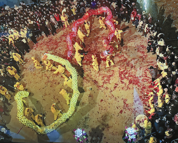 △2月10日至12日,柞水縣下梁鎮沙坪社區精心準備的舞瑞獅祥龍、劃車船燈等社火表演在社區輪番上演,絢麗的民俗表演服飾和激昂慷慨的鼓點將春節氣氛推向了高潮,讓群眾沉浸式感受傳統文化的獨特魅力。 (本報通訊員 陳 晨 攝)