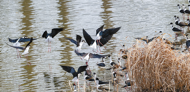 本報(bào)訊 (通訊員 張丹陽 張亞瓊)春暖花開,商洛大地草長鶯飛,鳥雀歡騰。4月6日下午,商洛丹江濕地飛來了一大群美麗的黑翅長腳鷸。它們時(shí)而掠過水面,紅足輕點(diǎn),時(shí)而振翅高飛,黑羽白腹在藍(lán)天碧水間劃出優(yōu)美的弧線,構(gòu)成了一幅優(yōu)美的生態(tài)畫卷。