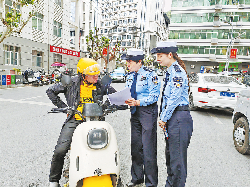 4月21日,鎮安縣交通民警正在向一名外賣騎手宣傳消費品以舊換新政策。為全力落實“兩新”政策,推動消費提質升級。近期,鎮安縣相關部門工作人員通過現場宣講等形式,向群眾宣傳消費品以舊換新的補貼標準、申領流程,為群眾送上惠民“政策禮包”,助力綠色消費升級。(本報通訊員 寧遠鵬 攝)