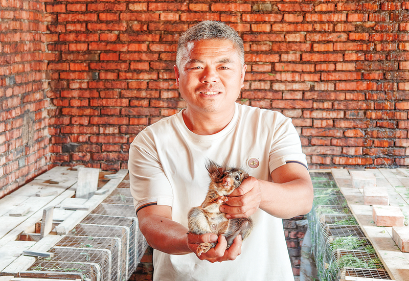 5月28日,四皓街道馬河村飛鼠養殖大戶冀利鵬在展示自己養殖的飛鼠。目前,馬河村村民養殖飛鼠6000多只,年產值預計2500萬元左右。