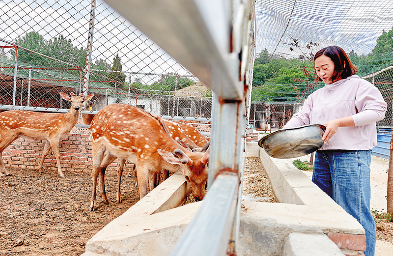 5月28日,位于四皓街道的洛南藍羽梅花鹿養殖基地里,基地負責人張利利正在給梅花鹿喂飼料。目前,該基地養殖有60多只梅花鹿,成為當地一大特色增收產業。