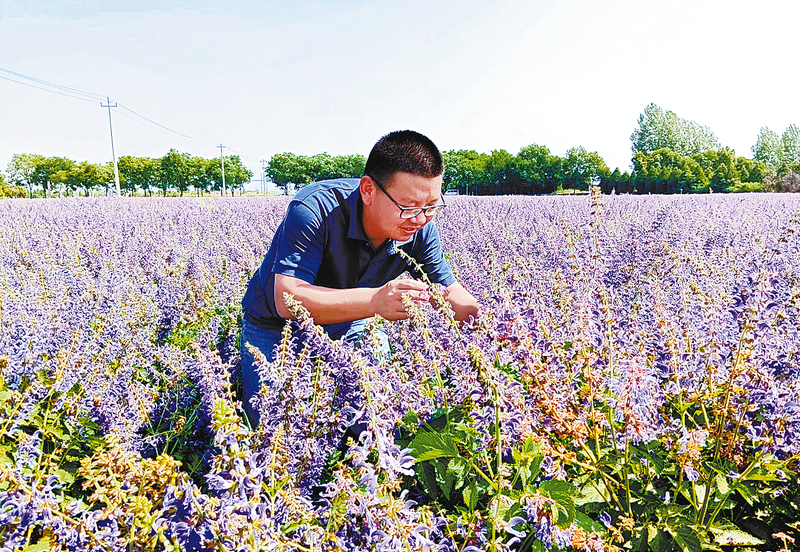 6月11日,陜西天士力植物藥業有限責任公司運營總監趙宏光在丹參基地查看丹參生長情況。