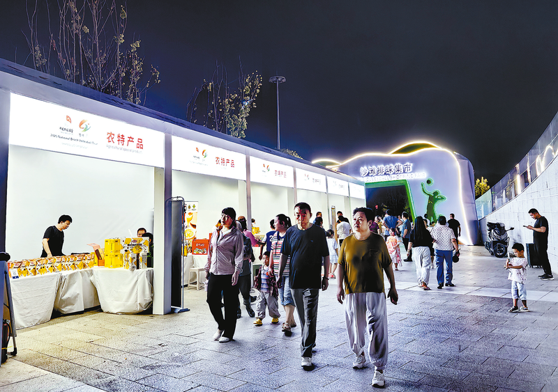 7月9日晚,秦嶺博物館廣場(chǎng)旁的沙灘排球集市人聲鼎沸,集中展示了商洛特色美食、農(nóng)產(chǎn)品及文創(chuàng)產(chǎn)品,吸引了大量市民和游客觀光選購(gòu)。 (本報(bào)記者 張 英 攝)
