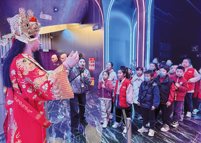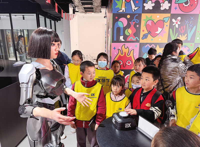 隨后,愛因斯坦仿生機器人吸引了大家的目光。通過先進的面部動態捕捉系統,機器人能夠實時捕捉每個人的面部表情并進行精準模仿。“這也太厲害了吧!它做出的表情和我們的一模一樣!”幾名小記者激動地說。緊接著,在講解員的帶領下,小記者穿過激光通道,李白、杜甫等歷史名人以機器人形態呈現在大家面前。“好雨知時節,當春乃發生。隨風潛入夜,潤物細無聲……”看著臺上的杜甫機器人,小記者情不自禁地吟誦起經典詩句。
