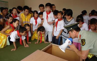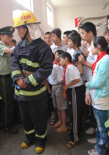隨后,消防戰士通過手語老師的傳遞,為70多名殘疾兒童講解了家庭防火、火災逃生、緊急避險等知識,并詳細參觀了消防車、消防帽、消防衣等設施。在中隊的軍營,豆腐塊狀的杯子、擺放整齊的臉盆、干凈整潔的床單呈現在了這些小家伙面前,一個聾啞兒童用手語說,“今天的活動不但使我了解到許多消防知識,而且更讓我體會到了消防戰士的辛酸。他們整潔的軍營對我教育很大,想想我們的宿舍,我真的很慚愧。”
