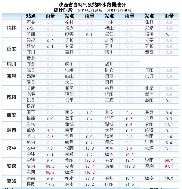 18日08時-19日08時,陜南有9站出現50毫米以上的降水,其中三地出現大暴雨,分別是紫陽137毫米、嵐皋112.3毫米、鎮坪110.2毫米。