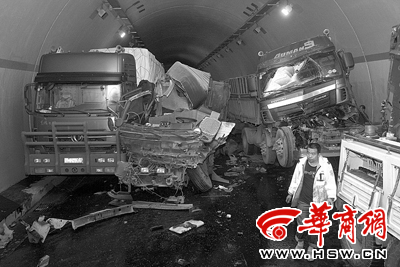 從河南南陽拉貨過來的張師傅說,車禍大概發生在凌晨5時許,“當時看到電子顯示牌里說前面有塌方,大家都開得較慢。”當他行駛到白家坪一號隧道里時,看到前面堵車便靠邊停下。此時,寧夏牌照的貨車已在前面靠右停著。然后,一輛貨車從左道沖了過來,在避讓不及的情況下撞到了寧夏貨車尾部,并沖到道路左側;緊接著,又有一輛貨車也沖了過來。
