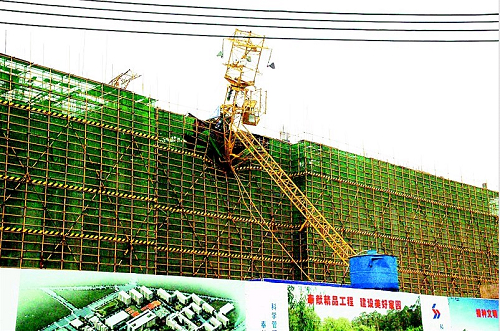 斷裂的塔吊砸在正在建筑的樓上 三秦都市報實習記者 郭小杰攝(資料圖)