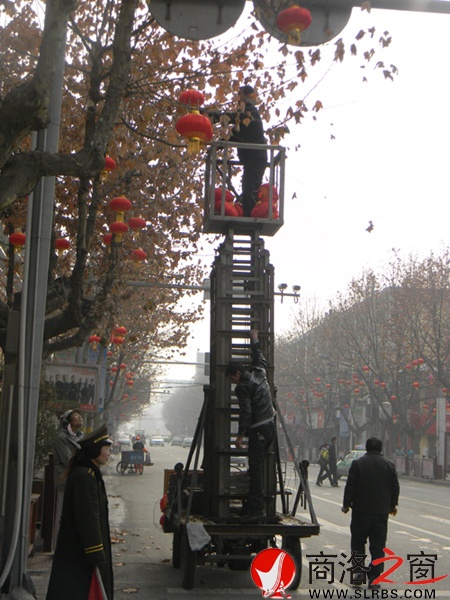 本網訊(記者 張小娟  實習記者 楊森)濃濃的新年味道彌漫著州城,紅紙金字的春聯還未揭下,玉兔呈祥的窗花裝點著喜慶的人家。2月10日,記者在北新街西崗樓段看到,近五米高的鐵塔上,兩三位工作人員正忙著給兩旁的大樹上掛紅燈籠。