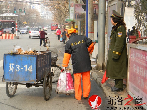 懸掛燈籠的機車占據街道的部分路面,一名協警在機車旁協助其他車輛的通過,疏通由于機車暫時帶來的不便,確保其他車輛、行人的順利通過。環衛工人對記者說,城市的環境要靠大家共營造同維護,懸掛燈籠碰落的樹葉,他們第一時間清掃,同是為市民服務,相互協助,商州才會更美。