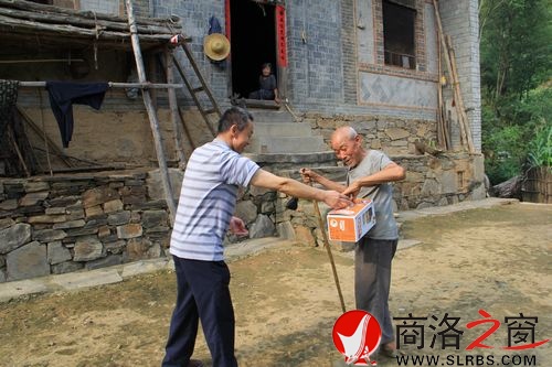 竹林關鎮政府給王忠慶老人帶去一盒慰問品