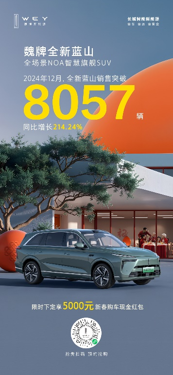 自上市以來,魏牌全新藍山銷量持續突破,連續四個月銷量突破6000輛以上,12月銷量再創新高勁銷8057輛,成為30萬級全場景NOA智慧旗艦SUV不二之選。魏牌全新藍山勢不可擋的銷量增長,充分展現了市場對其的熱烈追捧和高度認可,也讓我們對魏牌全新藍山銷量破萬充滿了期待。