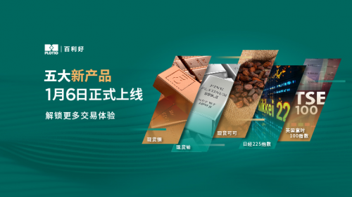 為了滿足投資者的多樣化需求,百利好于1月6日正式推出五種全新交易產品,其中包括現貨銅、現貨鉑、現貨可可、日經225指數、英國富時100指數,旨在助力投資者進一步豐富投資組合,把握全球市場動態。