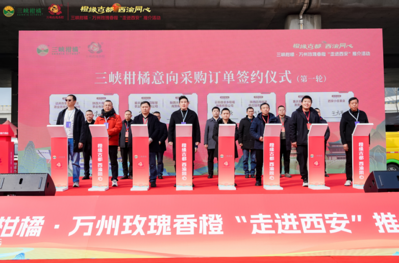2月28日,備受矚目的三峽柑橘·萬(wàn)州玫瑰香橙“走進(jìn)西安”推介活動(dòng)在西安雨潤(rùn)水果批發(fā)市場(chǎng)盛大舉行并圓滿落幕。本次活動(dòng)以“橙緣古都·西渝同心”為主題,旨在深化三峽柑橘產(chǎn)業(yè)的高質(zhì)量發(fā)展,同時(shí)加強(qiáng)西安與三峽地區(qū)的經(jīng)濟(jì)合作與文化交流,共繪鄉(xiāng)村振興新篇章。