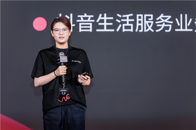(抖音生活服務業(yè)務副總裁郝霞在會上做分享)