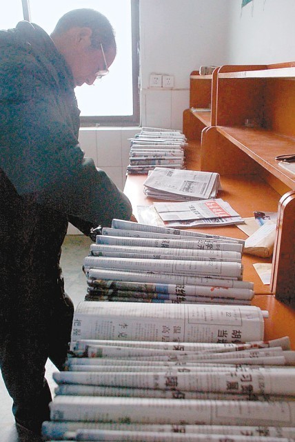 田均喜正在分揀報(bào)紙