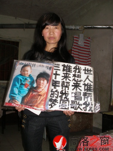 6月18日下午,當我來到西安市真理村的出租屋里,看見這位瘦弱單薄的商洛老鄉時,她一臉的疲憊。因為眾多媒體的關注,她現在每天要接受很多采訪,電視臺、報紙,一家一家的媒體,使得這位瘦小的商洛女子既感動又忙碌。趙雪芳的眼睛有些腫脹,她說這是流淚太多的原因,因為還有幾天后的500強比賽,她每天要堅持練歌,可是只要她一唱歌,就會想起那個夢里才能看見的兒子,她就痛苦傷心,流淚不止。