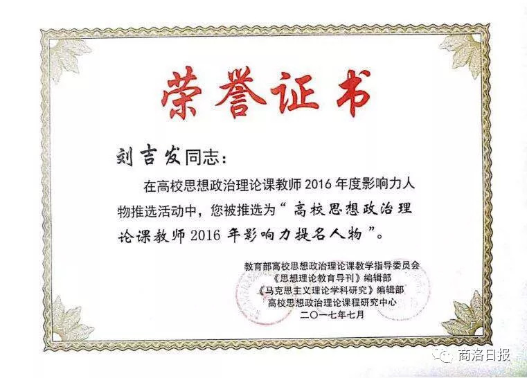 提起劉吉發(fā)的成功,我不得不先說說他的過去:在商洛山里,我們都算得上是品學兼優(yōu)的學生,但高考制度剛恢復,作為農村長大的我們,誰也不敢冒然去考大學,而是選擇了高中專。中專畢業(yè)當了教師,又有幸遇上成人高考,就這樣,1984年通過成人高考進入商洛師專(現在的商洛學院)中文進修班學習。剛入學,就聽說他是黨員。我想,他會不會想成為一個政治人物呢?也許是他比我以及應屆生大幾歲的緣故,他在那個時候就不但成為了孩子的父親,還成為了學生會主席,為人處事顯露出驚人的成熟和組織能力。