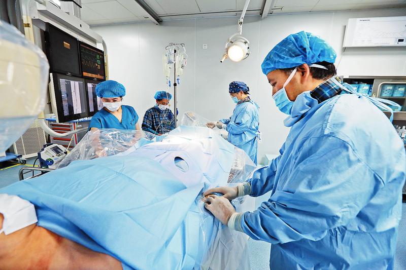 心臟介入診療手術創傷小、見效快,尤其對急性心肌梗死在第一時間內搶救生命極為重要。從手腕或大腿根部血管穿刺建立通道,利用導管、導絲直達心臟血管病變部位,進行血栓抽吸、球囊擴張或植入支架,從發病到血管開通時間越短效果越好。對冠心病引起的心絞痛,手術后癥狀可明顯得到改變。