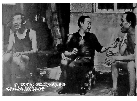 平凹的妻子穿一件納扣門子、攆襟紅衣服,十分得體漂亮。她是棣花西街村人,十幾歲就被丹鳳劇團招去演戲,是公社上萬人中的人尖尖、丹鳳劇團的臺柱子,演過江姐、鐵梅等等,人都愛看。