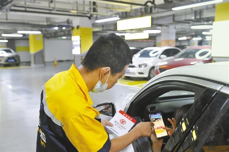 8月20日,西安市民鄧女士在地下停車場工作人員指導(dǎo)下,使用數(shù)字人民幣支付停車費(fèi)。