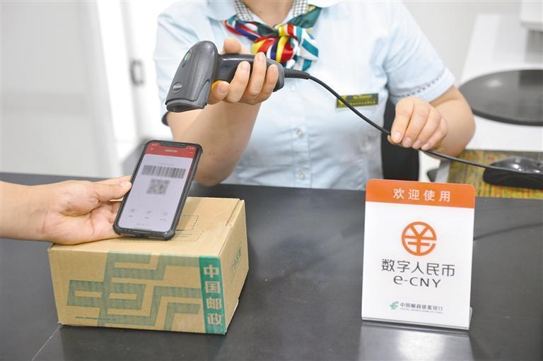 8月22日,西安市民在中國郵儲銀行西安市太乙路營業(yè)所使用數(shù)字人民幣支付方式郵寄快遞。